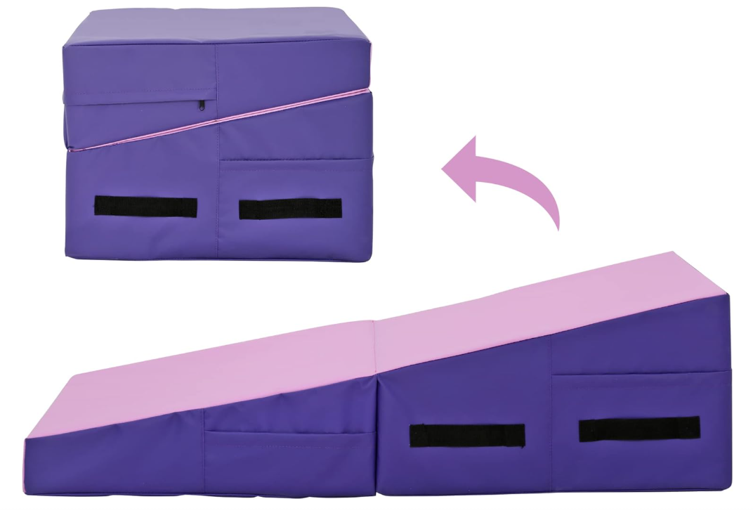 This Fittumble folding incline gymnastics mat is the perfect training tool for home practice. Crafted with high-density foam and a durable, easy-to-clean cover, it delivers reliable cushioning for tumbling, backbends, and skill building. The foldable design saves space for storage, while sturdy handles make it easy to transport. Ideal for gymnasts of all levels, it supports safe, comfortable training for flips, stretches, and strength exercises.